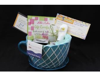 This gigantic ceramic coffee mug holds some Lull Farm Preserves, Barefoot Bee products, gift cards to Great Harvest Bread Co., Monument Square, Wild Salamander, Buckley Group, Chipotle, and Nikki's cakes! Shop Local and enjoy some great treats!