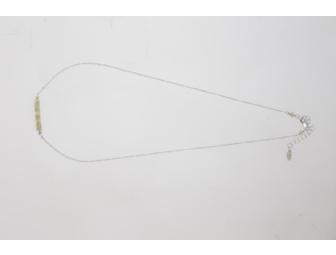 This handmade necklace features a row of genuine green sapphire gemstone beads, fine cable chain with a lobster clasp, and sterling silver. Necklace measures 16 inches and has a 1.5-inch extender. The length may be altered at the winning bidder's request.