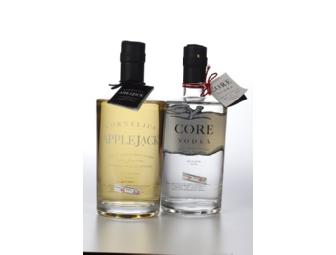 Indulge in a truly one-of-a-kind homegrown eclectic mix from the upstate distillery where farm meets high class spirits. Small batch and hand crafted, each bottle of Core Vodka and Cornelius Applejack is hand numbered at Harvest Spirits, the Hudson Valley's premier farm distillery located in bucolic Columbia County, New York. Part of a third-generation apple farm, Harvest Spirits distills its products from fresh cider pressed on the premises with apples from its own orchards. The German coper distillery only accommodates 100 gallons at a time, meaning each batch is meticulously hand crafted and carefully distilled. Core Vodka : Award-winning distinctive vodka made from 100% apples. A bright, floral nose leads to a long, clean finish. Superb in cocktails or simply by itself. Distilled three times from hard cider and minimally filtered to retain its true apple character. Tasting.com rating: 92 points (Exceptional). Cornelius Applejack : Award-winning from 100% apples, aged in premium bourbon barrels. Notes of baked apple finish with delicately spiced oak and maple wood. Complex and warming. Tasting.com rating: 90 points (Exceptional) .
