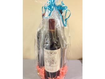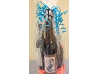 Wine Offering With Rustic Metal Peace Sign Decorative Bottle Topper and 3 Bottles of Wine