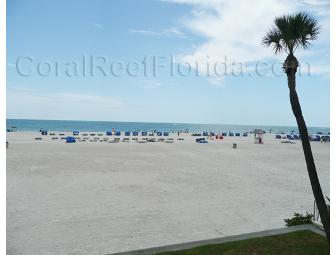 One-week time share @ Coral Reef, in St. Petersburg Florida. Approximately 30 minutes from Tampa Airport. Condo is right on the Gulf. 1 Bedroom, Full Kitchen. 2 Swimming pools. Hide a bed in livingroom, which is better suited for kids. Dates are 10/26/2013-11/2/2013 See website for details: http://www.coralreefflorida.com/