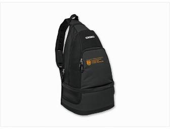 Versatile backpack/cooler by Ogio featuring three areas to transport food and fun: a top dry storage area (food, clothing, tech gear) breathable area for wet storage (think beach towels) and large cooler in the base (12-can capacity). This unique solution offers an adjustable single strap with clip for carrying on either arm. Decorated with an embroidered Tuck School of Business Center for Digital Strategies logo. Measures roughly 20" high x 12" wide x 7" deep.