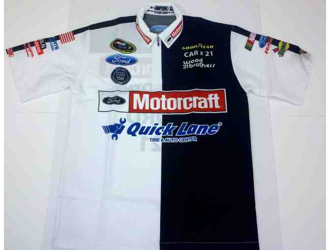 Wood Brothers Crew Shirt with special paint scheme for Henry Ford's 150 birthday. Men's small. Click here to find out more about the paint scheme and the Henry Ford birthday celebration: http://racing.ford.com/stock-car-racing/news/articles/wood-brothers-bayne-unveil-henry-ford-150-fusion-1293055420035/ OWN A TRUE PIECE OF FORD RACING HISTORY!!