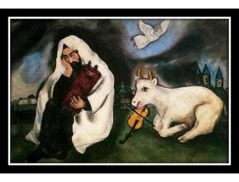 Marc Chagall was born Moishe Shagal on July 7, 1887, in Vitebsk, Russia, to a poor Jewish family that included ten children. His father, Zakhar Chagall, worked in a fish factory and his mother, Ida Chagall, worked in the family home and ran a grocery store. The years of his childhood, the family circle, and his native village became the main themes of his art. These first impressions lingered in his mind like original images and were transformed into paintings with such titles as the Candlestick with the Burning Lights, the Cow and Fish Playing the Violin, the Man Meditating on the Scriptures, the Fiddler on the Roof, and I and My Village. According to French poet and critic André Breton (1896–1966), with Chagall "the metaphor [comparison of images] made its triumphant return into modern painting." And it has been said that Pablo Picasso (1881–1973) was a triumph of the mind, but Chagall was the glory of the heart.