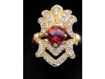 GORGEOUS ESTATE STYLE RING FEATURES GENUINE RUBELLITE TOURMALINE AND DIAMONDS!!