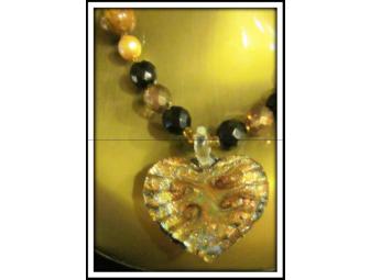 Featured Components: Faceted and Smooth Black Onyx, Tiger's Eye, Austrian Crystal Pearls, 2 Heart Accents, Heart Art Pendant