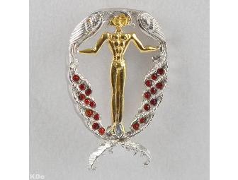 From "The Father of Art Deco" ERTE! Dazzling "Q"-shaped Pendant/Brooch, made of Gold-Plated Sterling Silver, with Hand-Set Swarovski Crystals! ** List Price: $395.00