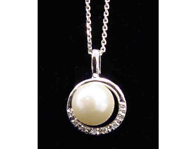 This simple yet elegant design will bring a smile to your special lady's face this holiday. One single white faux pearl is adorned in a silver circle with crystal accents. Pendant comes with 18" chain.