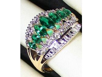 FJ BEAUTIFUL LAB EMERALD AND BRIGHT WHITE GENUINE DIAMOND RING IN 14 KT GOLD!