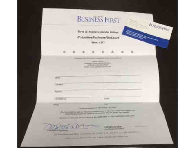 Receive three online calendar listsing on the business calendar on ColumbusBusinessFirst.com.