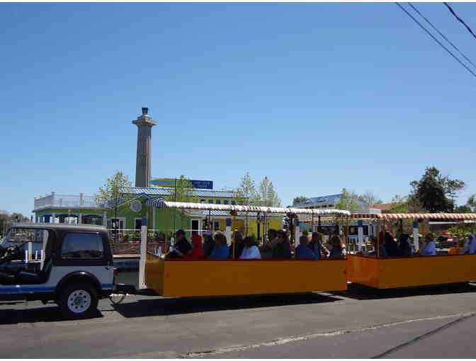 4 Put-in-Bay island tour train passes with entrance into multiple attractions, 4 Round trip tickets on the Jet Express ferry, 4 Maui Sands indoor waterpark passes and Lake Erie Shores and Islands and Put-in-Bay Goodies!