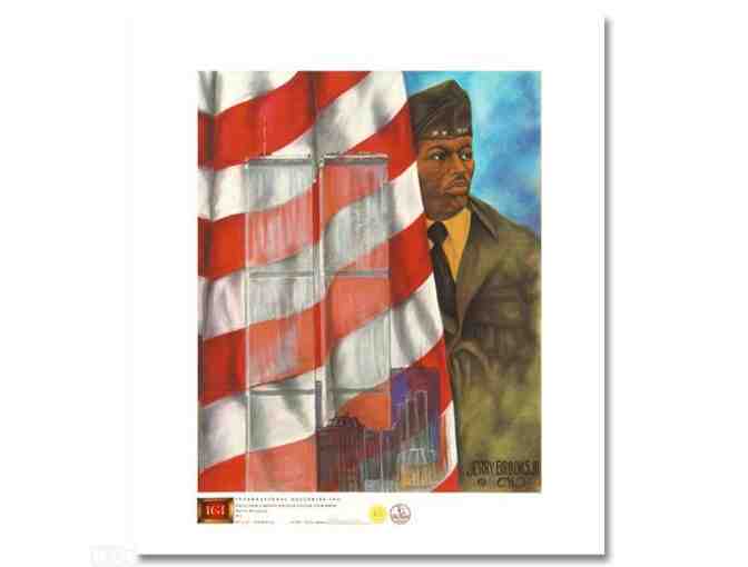 NOW'S THE TIME TO BID ON THIS BEAUTIFUL WORK OF ART BY JERRY BROOKS JR.! The artists' works are filled with expressive imagery and soothing color! "911" is a numbered limited edition plate signed Giclee on un-stretched canvas by Jerry Brooks Jr.! Includes Certificate of Authenticity! Measures Approx: 16" x 20" (image). List price: $240.00