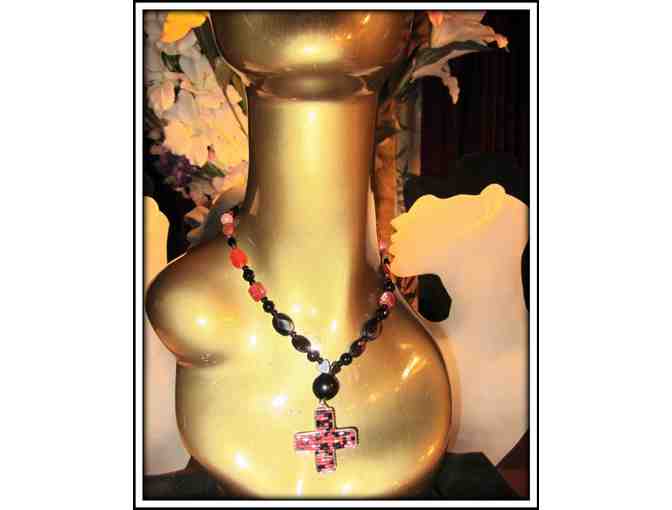 Necklace with Beaded Art Cross Pendant