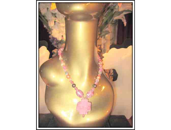 Featured Components: Pink Turquoise Cross, Rhondonite, Austria Crystal Pearls, Freshwater Pearls