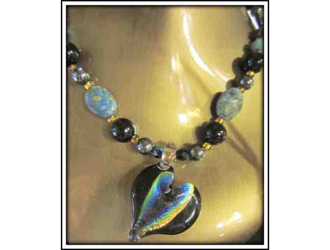 ONE OF A KIND GEMSTONE NECKLACE WITH NEON HEART PENDANT