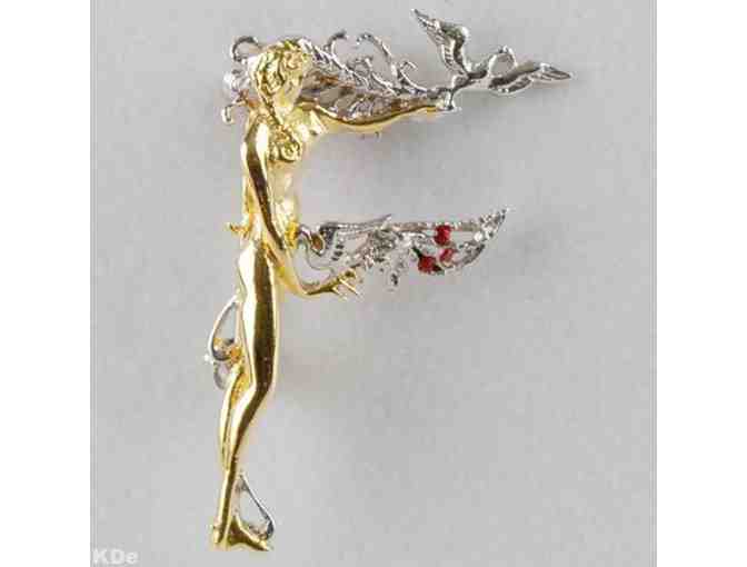 From "The Father of Art Deco" ERTE! Dazzling "F"-shaped Pendant/Brooch, made of Gold-Plated Sterling Silver, with Hand-Set Swarovski Crystals! ** List Price: $395.00
