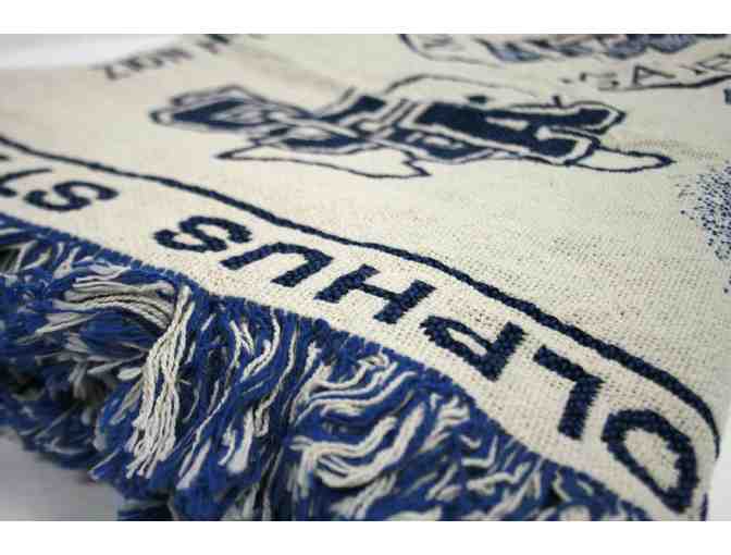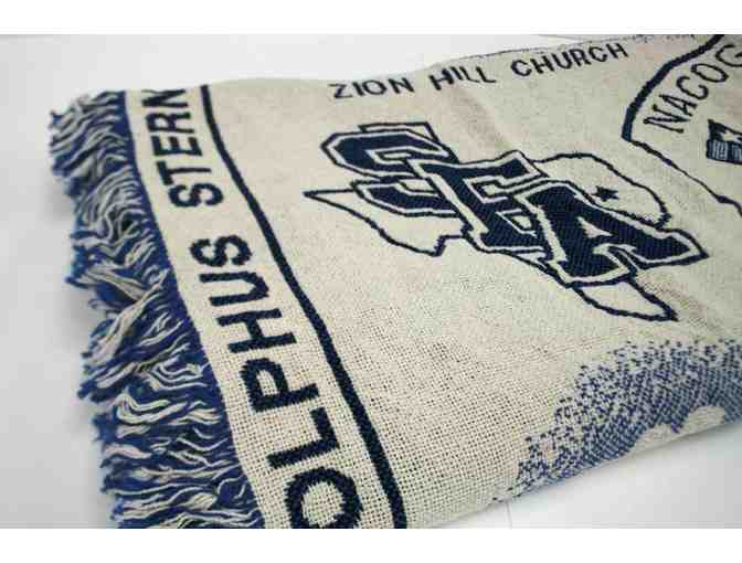 The Nacogdoches tapestry throw blanket shows off the high points visitors note on trips to Nacogdoches. The unique, woven design ensures the landmarks will last for years and years. Historic Texas icons Adolphus Sterne, General Sam Houston, Diedrich Rulfs and Thomas J. Rusk are remembered in the woven design, which also includes images of the Old Stone Fort, Old University Building, Zion Hill Church, the Blount Home, Durst-Taylor House & Gardens, Lake Nacogdoches, Millard's Crossing, Plaza Principal, Llano Grande Plantation, and the Sterne-Hoya House Museum & Library.