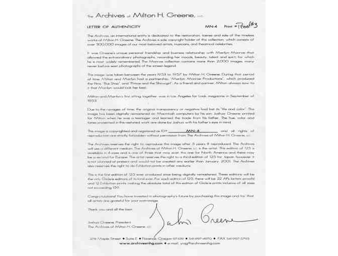 This image was taken between the years of 1953 to 1957 by Milton H. Greene. During that period of time, Milton and Monroe had a partnership, "Marilyn Monroe Productions," which produced the films "Bus Stop," and "Prince and the Showgirl." As a friend and partner, Milton always saw to it that Marilyn would look her best.