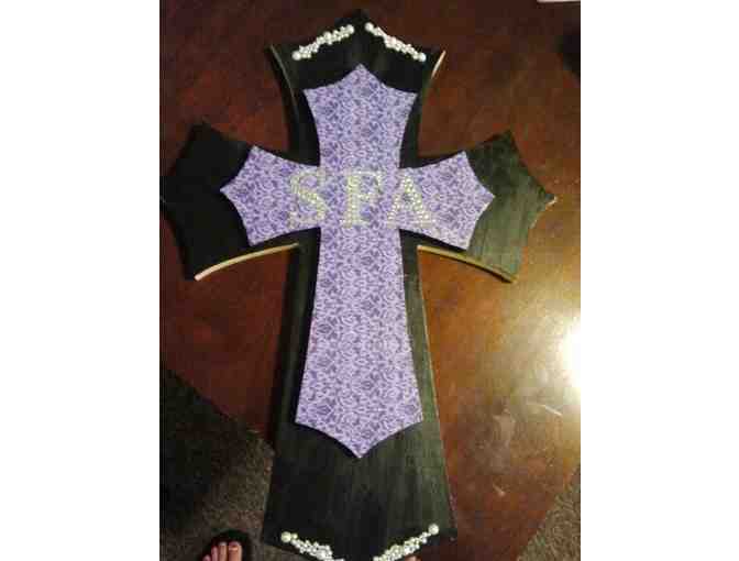 Wooden SFA themed custom cross; can be made to match desired color theme of buyer.
