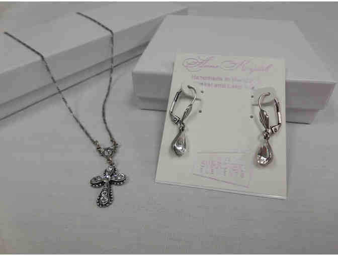 Hand-Made, Vintage-Inspired Cross Necklace & Teardrop Earrings Set