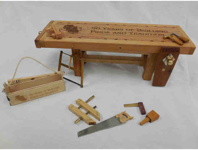 Be the proud owner of this one-of-a-kind handcrafted workbench...that fits on your desk! This miniature workbench was created in the likes of the table used by local artisan and retired SFA professor, Jim Snyder.