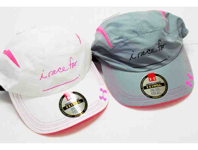 Featuring “I race for [blank],” this pair of Under Armour baseball caps in white and gray will keep you cool and dry in hot weather. Breathable and lightweight, these caps feature a HeatGear sweatband to wick moisture away as your activity levels rise. One size fits all; adjustable closure provides a comfortable custom fit.