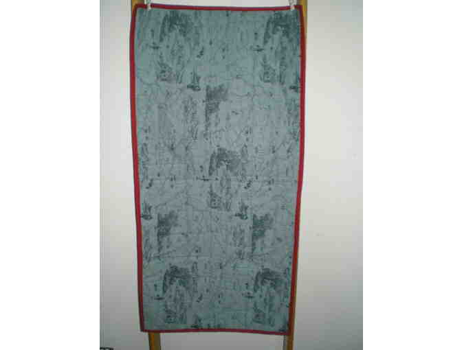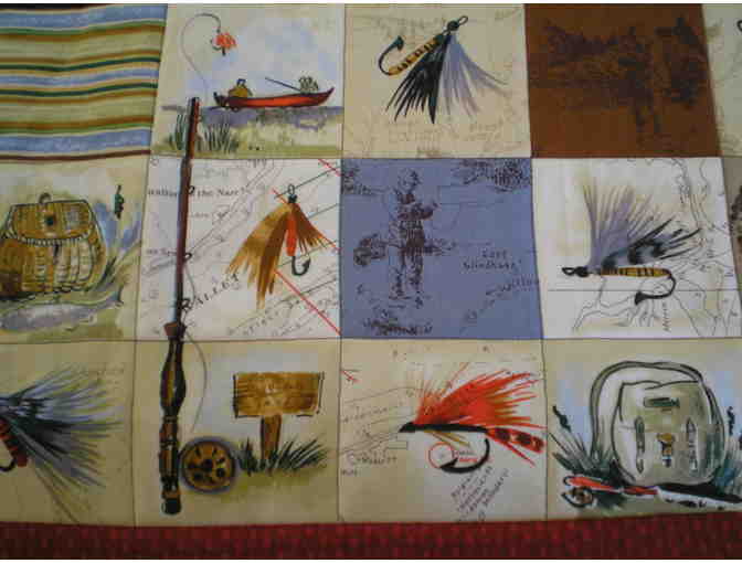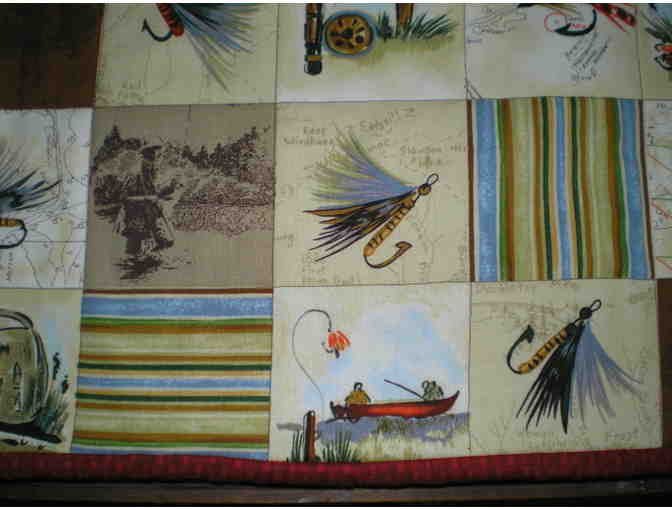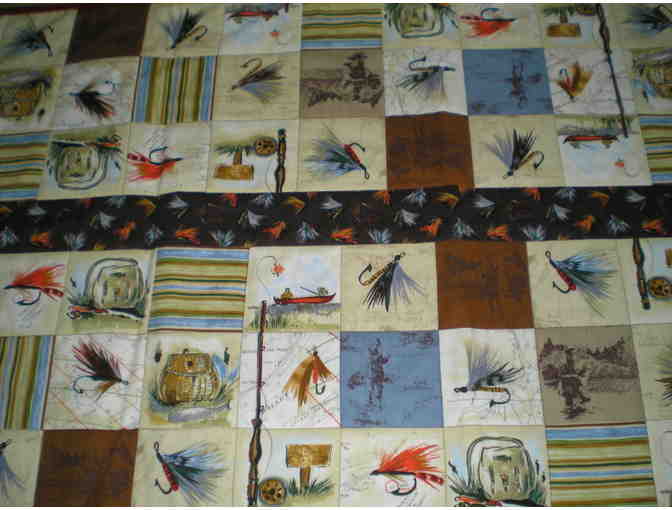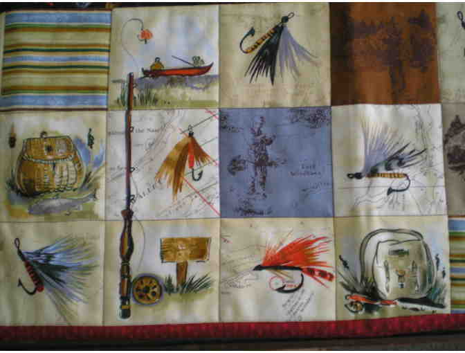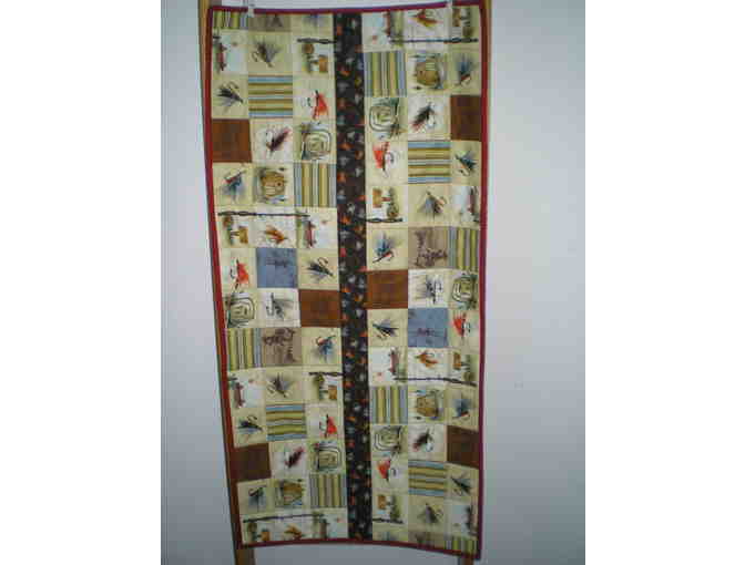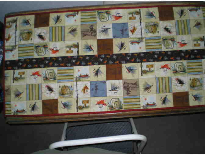 This beautiful table runner was designed and quilted by Sharon especially for our CFR auction, and it will add a lovely touch to any home. It is carefully crafted using fabrics--some of gorgeous flies and others in patterns--all in shades of the outdoors. The back is finished with a complementary fabric; the piece is 19 1/2" wide by 40" long. This is truly a one-of-a-kind, special quilted piece.