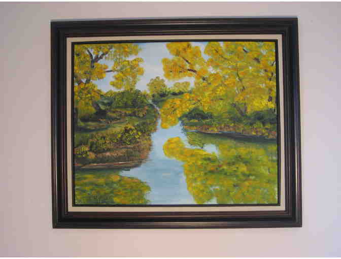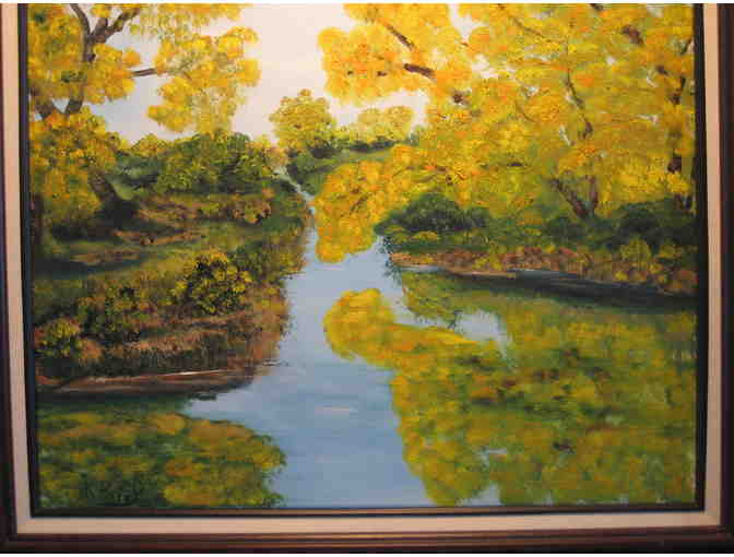 Bid on a very peaceful framed and matted oil painting titled October Trees by artist Karen Perry from Montana. The size of the painting is 16" x 20".
