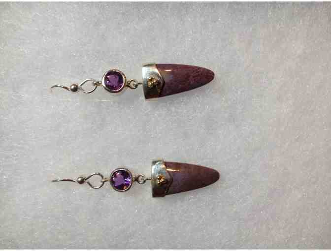 Handmade Sterling Silver Earrings with Amethyst and Purple Jade donated by Reflections Fine Jewelry in San Anselmo.