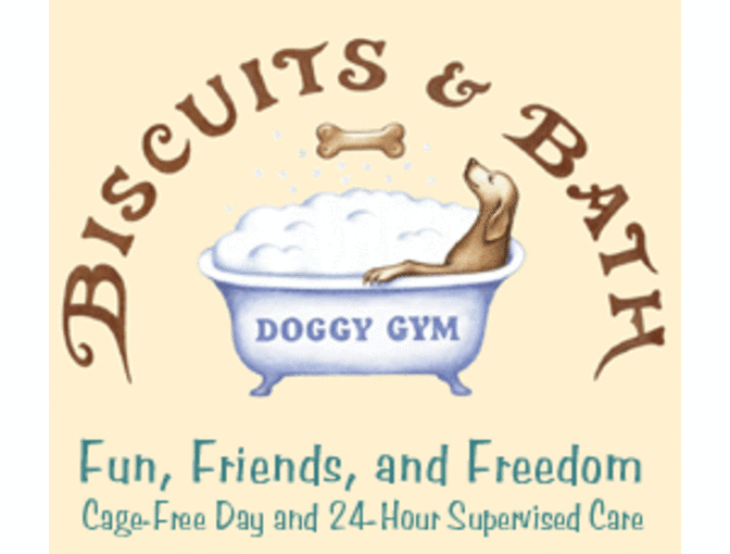 Biscuits and Bath Dog Retreat Total Wellness 3 Day Experience. Includes 3 days of day care, 1 fun walk while in day care, 1 train and play session, 1 bath and brushout.