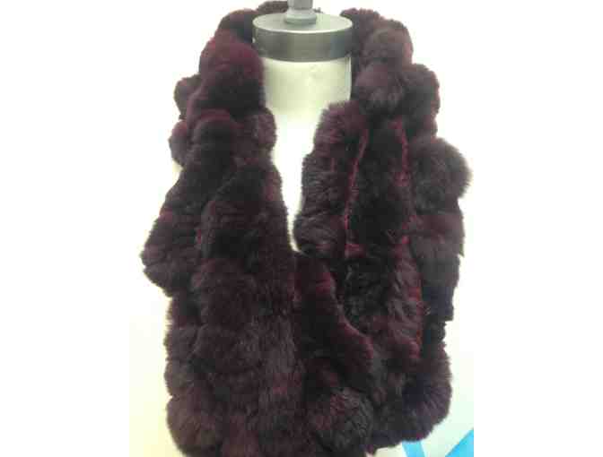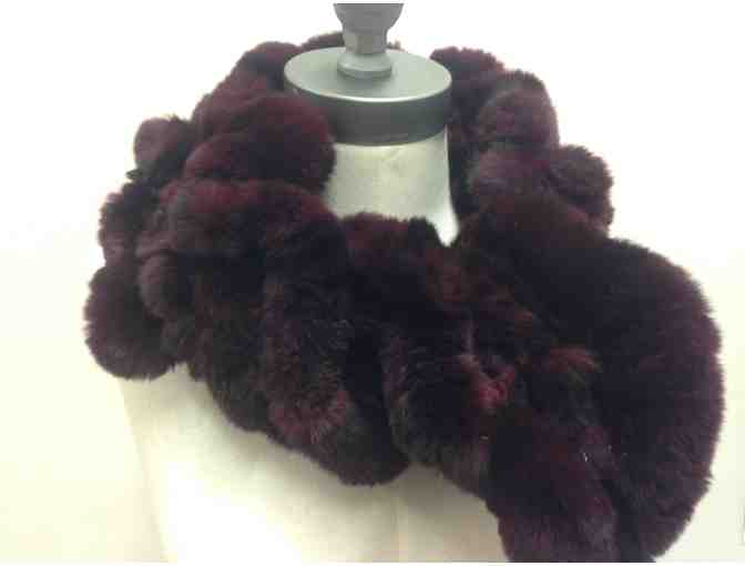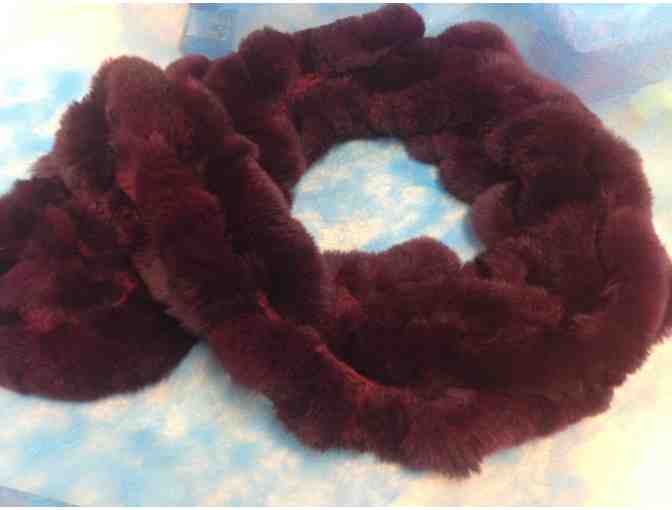 Stunning, incredibly soft, luxurious Rex fur scarf by Belle Amie. Ruffle style crochet scarf in a rich wine color.