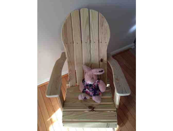 Handmade adirondack is the perfect size for toddlers to early teens. The rocker is made with pressure-treated wood so is safe to use indoors and out. Your child will feel special when they sit in a chair that is just their size. The design features traditionally wide armrests, a double rounded back rest and smooth rounded edges keeping safety in mind. Dimensions: 21"W x 24"D x 32"H.