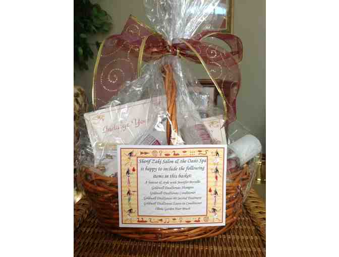 Basket includes: A haircut & style with Jennifer Borsello ($69), Goldwell DualSenses Shampoo ($17), Goldwell DualSenses Conditioner ($18), Goldwell DualSenses 60 Second Treatment ($18), Goldwell DuaSenses Leave-In Conditioner ($20), Olivia Garden Hair Brush ($24) and a $100.00 gift certificate.