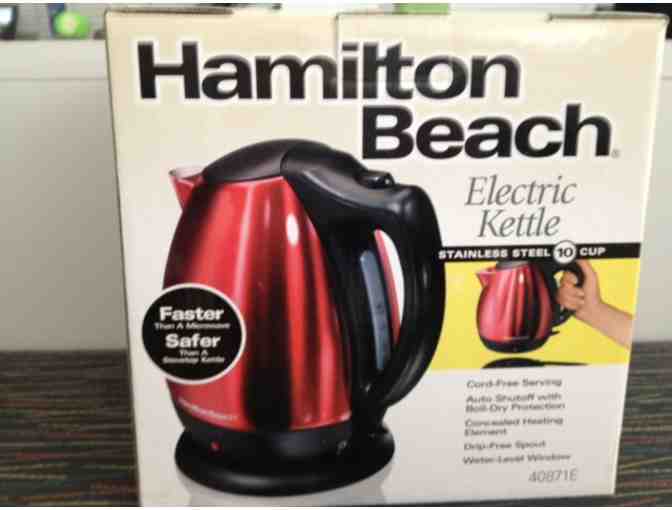 Tea, Hot chocolate, Instant soup. If you have a taste for it, Hamilton Beach Kettles can have it ready in minutes. The powerful rapid-boil system provides fast heat-up from any standard outlet and the auto shutoff function helps keep kettles from boiling dry. Hamilton Beach kettles are great looking and easy to use.