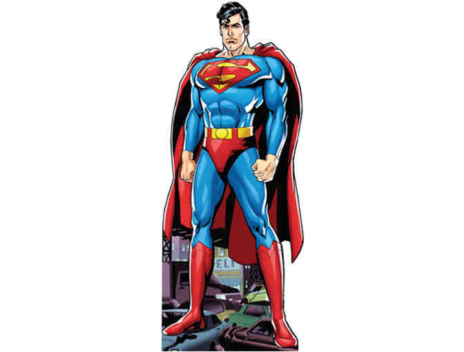 This Superman figure is 6 feet tall and 29 inches wide. It is printed on heavy duty corrugated cardboard and built to last. Wouldn't your son love to wake up to Superman in his room each day? The figure can stand up with the attached easel or be hung on the wall.