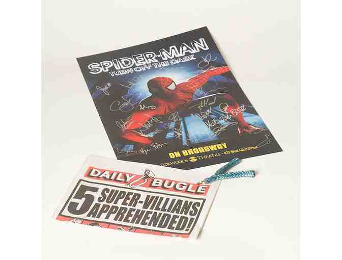 Are your Spidey-senses telling you to bid? Get your webs on this amazing Spider-man: Turn Off the Dark memorabilia package. Includes autographed poster, "Daily Bugle" prop and flying cable key fob.