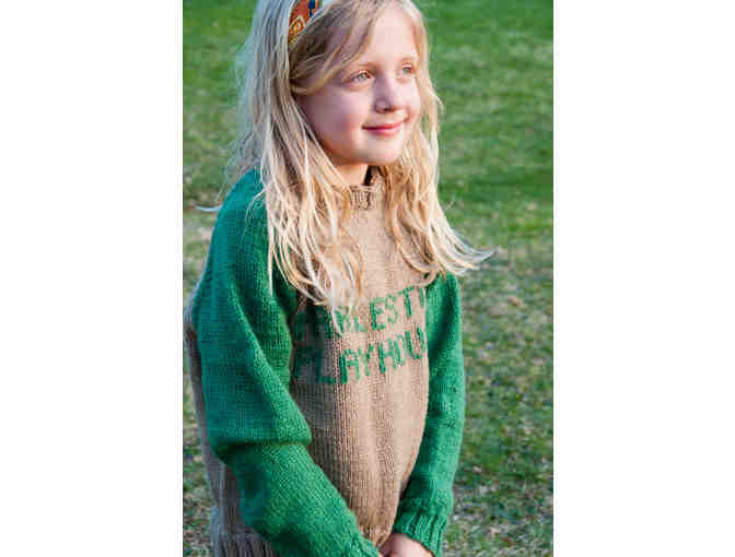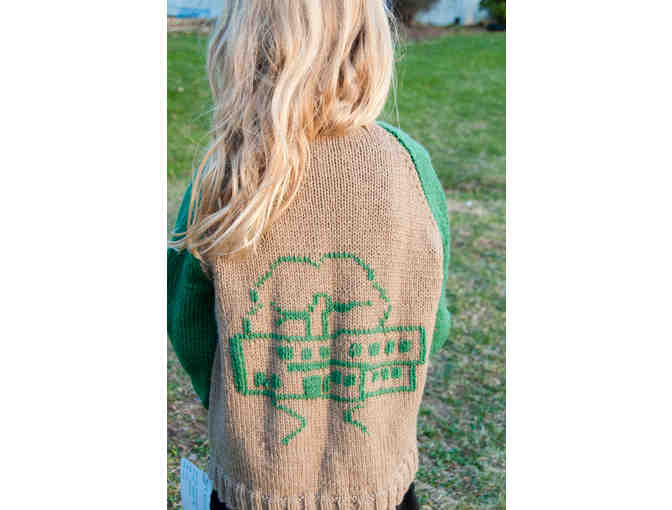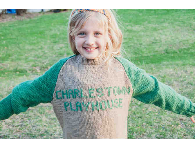 This gorgeous sweater was knit with love by Charlestown Playhouse's own Melissa Lennon. It's made from 100% Superwashable Wool, and is about a size 7 (the model is a size 6-7, and it's a bit roomy on her).