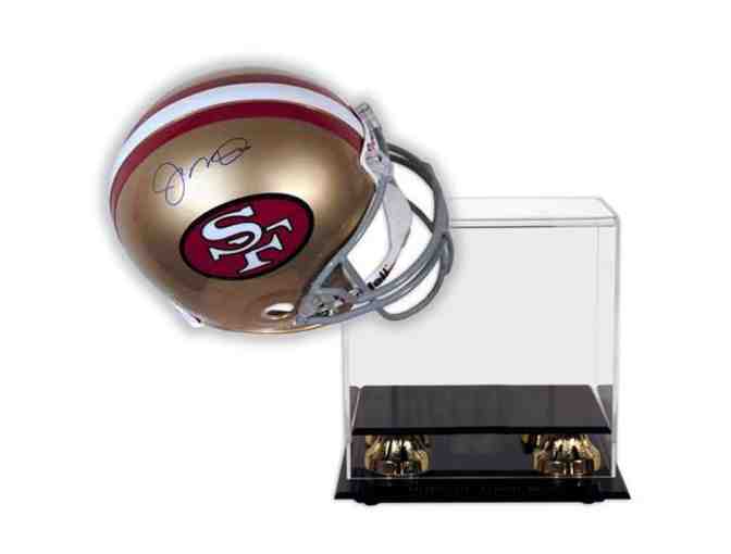 Bids are for a limited edition Joe Montana hand-signed official full size authentic San Francisco 49ers game helmet with a deluxe display case. The only player in NFL history to be named Super Bowl MVP three times, Joe Montana is considered to be one of the greatest quarterbacks in football history. A member of four Super Bowl Champion San Francisco 49er's teams, Montana has never thrown an interception during a Super Bowl game, and was named NFL MVP in 1989 and 1990. Montana has over 40,000 career passing yards, including thirty-five 300-yard passing games, and 273 passing touchdowns. Montana was named to the NFL 75th Anniversary All-Century Team and NFL 1980's All-Decade Team, was inducted into the Pro Football Hall of Fame in 2000, and holds the third highest passer rating of all time. Certificate of Authenticity included.
