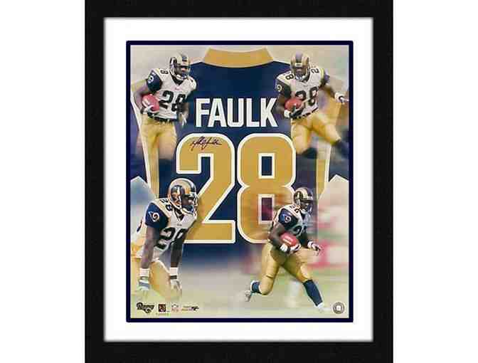 Bids are for a limited edition Marshall Faulk hand-signed and framed 16x20 photo. After being drafted 2nd overall by the Indianapolis Colts in 1994, Faulk joined the Rams in 1999. Earning a Super Bowl ring with the Rams' victory in XXXIV, Faulk is a seven-time Pro Bowl selection. Faulk was also named 2000 NFL MVP by the Associated Press. Item comes professionally double-matted and framed. Certificate of Authenticity included.