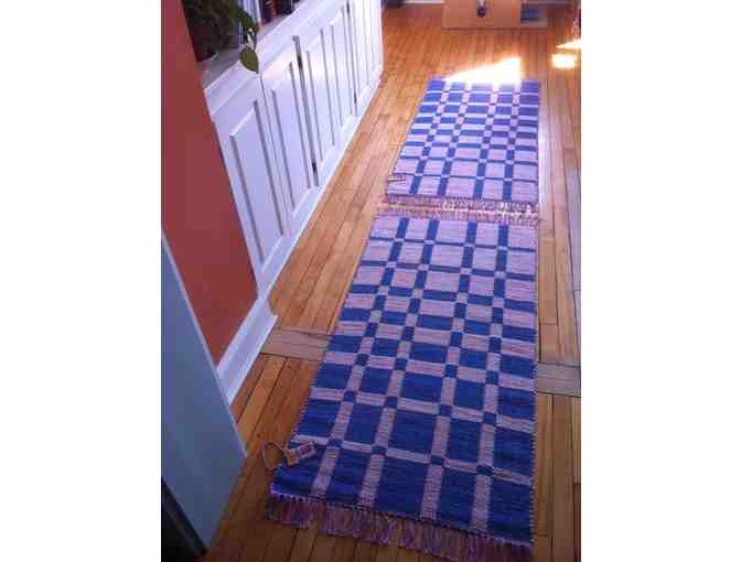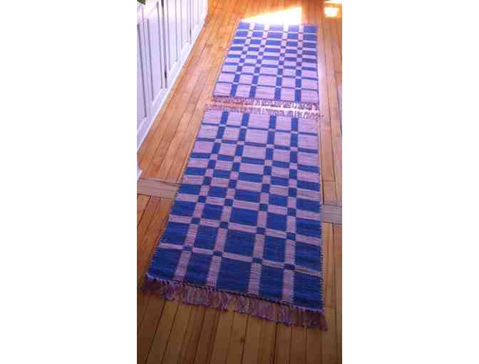 Set of 2 beautifully handwoven rugs made in Southern Maine, from Tidal Handwovens. Subtle colors of pale pink and sky blue are the pallet of these two matching handwoven rugs, each measuring 52" x 27".