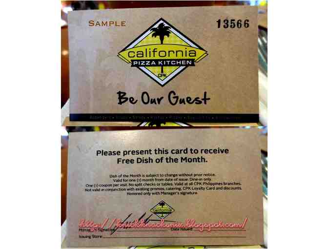 Winning bidder will receive two "Be Our Guest" passes from California Pizza Kitchen. Each pass may be used to redeem any entree and soft drink item at any CPK location in the United States, excluding ASAP/airport locations, travel plazas, stadiums, universities, the Mirage Hotel in Las Vegas and Guam.