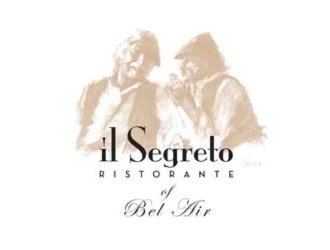 $80 gift certificate to Il Segreto Ristorante of Bel Air. Nestled in the hills of Bel-Air, Il Segreto is the newest addition to the group of restaurants owned by Chef and restaurateur Giacomino Drago. Located in the Beverly Glen Centre.