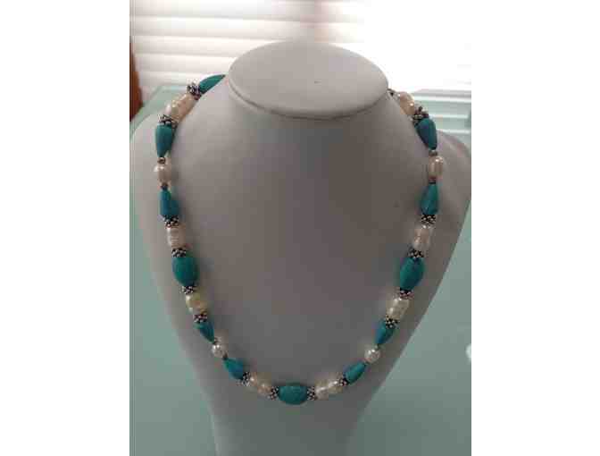 Gorgeous Turquoise, Freshwater Pearl & Tibetan Silver Necklace & Earrings Set