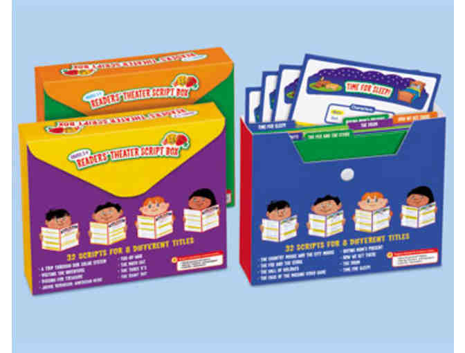 YOUR TAX-DEDUCTIBLE CONTRIBUTION PURCHASES THIS ITEM FOR OCS - THANK YOU! Students build fluencyand develop a sense of pacing, intonation, expression and morewith entertaining scripts that are lots of fun to read aloud! In each box, you get a total of 32 four-page scripts (4 copies for each of 8 plays). The scripts are designed for 4 readers at a timeand each copy has a different characters lines highlightedso its super-easy for students to follow along and read their parts!