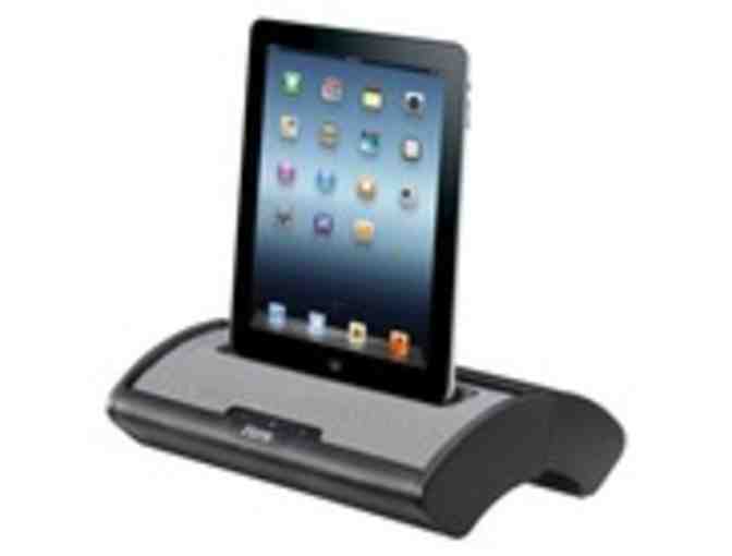YOUR TAX-DEDUCTIBLE CONTRIBUTION PURCHASES THIS ITEM FOR OCS - THANK YOU! Plug into great sound with the iHome Stereo System for iPhone/iPad/iPod. Compatible with several Apple products, this stereo speaker plugs into the wall and also runs on batteries to keep the tunes rolling wherever you go. Unleash the audio on your device for background music while you're working in the shop, or bring it front and center to get the party started with friends. 2 speakers make for great stereo sound that can fill the biggest of rooms.