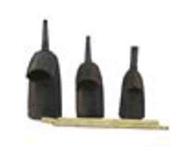 YOUR TAX-DEDUCTIBLE CONTRIBUTION PURCHASES THIS ITEM FOR OCS - THANK YOU! Traditional gankogui (African agogo bells) with a stacked configuration; medium size (approx. 10"-11" long). Made in Togo and Ghana by blacksmiths using hand bellows and rudimentary forges. Since each bell is hand-forged, each will have its own unique tone. Traditionally used to mark the beat for ceremonies, this bell is one of the most important parts of many percussion ensembles. It produces various open and closed sounds, with a brighter tone than the Nigerian agogo bell.