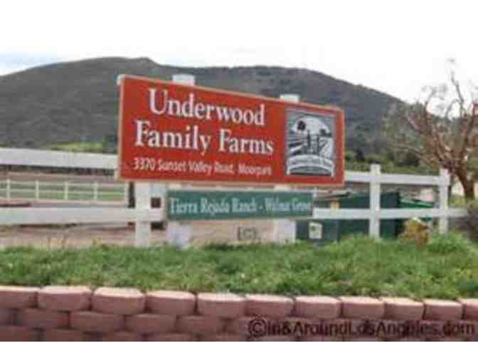 Spend the year sampling the bounty from each season with the one year pass to Underwood Farms, good for up to five (5) family members. The pass offers unlimited entrance to the Farm Center at Underwood Family Farms in Moorpark for one year from January 1, 2014. The Farm features pick your own produce, a petting zoo, pony rides, and much, much more!