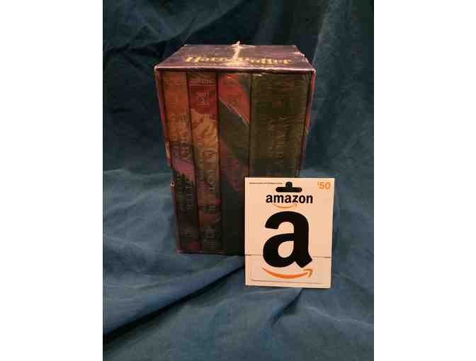 This Basket Includes: Harry Potter Book Set Books 1 - 4, $50 Amazon Gift Card