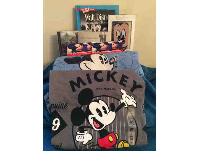 This Basket Includes: $25 Disney Gift Card, Mens Blue Medium Mickey Mouse T-shirt, Mens Gray Large Mickey Mouse T-shirt, Disney Mickey Mouse iPhone 4 Clip Case & Screen Guard, Disney Oz The Great and Powerful CD, Saving Mr. Banks double CD, (3) Disney Gift Cards, $15 each