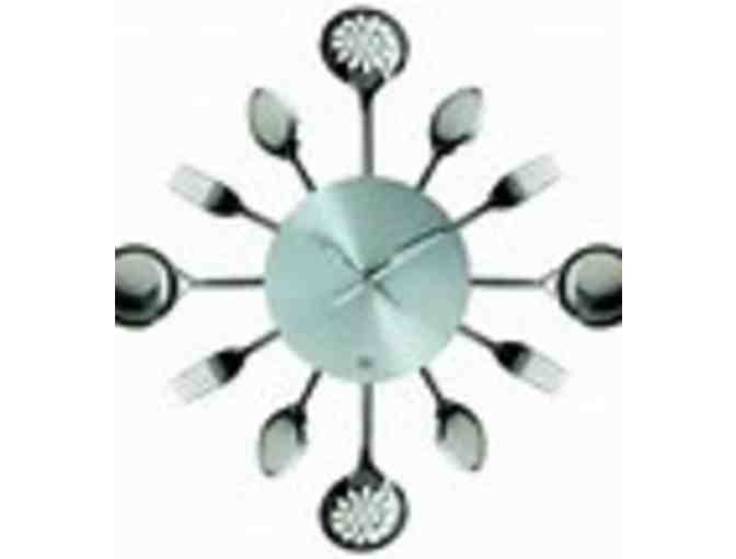 Cultivate Kitchen and Home provides this decorative 17" chrome wall clock by Present Time. Item includes a Le Creuset shopping bag.